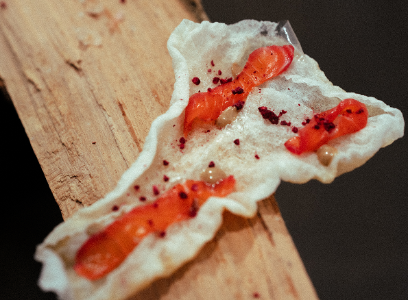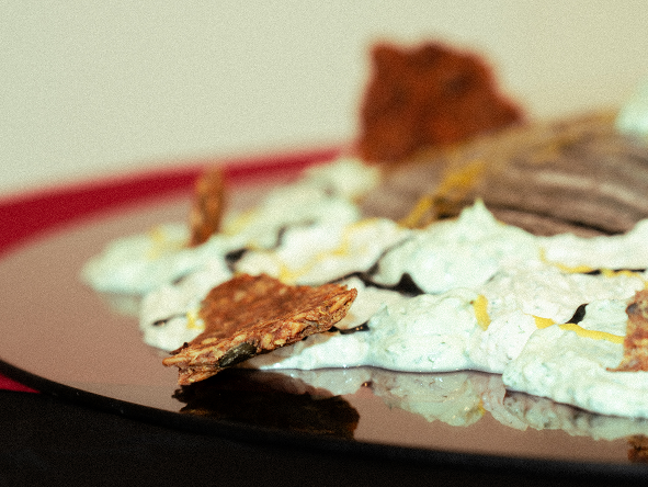 At Luisa Catucci Gallery in Berlin Mitte, we presented a food installation exploring a continuous chain of translation: just as nature informed the artists' vision, their work became the foundation for our culinary exploration. Responding to the NATURE’S SIGNATURES exhibition, we metabolized static artworks into a synesthetic, edible medium, focusing on color, texture, sound, and organic composition. Zak van Biljon’s infrared landscapes — where the green of chlorophyll turns into striking crimson — were mirrored through the use of natural red pigments like beetroot, subverting visual expectations. Tom Kretschmer’s focus on rhythm was turned into an experience of sound and touch. The sharp crunch of fragile crackers against viscous, slow-moving sauces brought the wild rhythms of nature directly to the palate. Finally, Samanta Malavasi’s root patterns became our floor plan, letting organic growth dictate how the food inhabited the tablescape. If art imitates life, and life imitates art, here food imitates both, turning the act of eating into a radical exploration of perception.